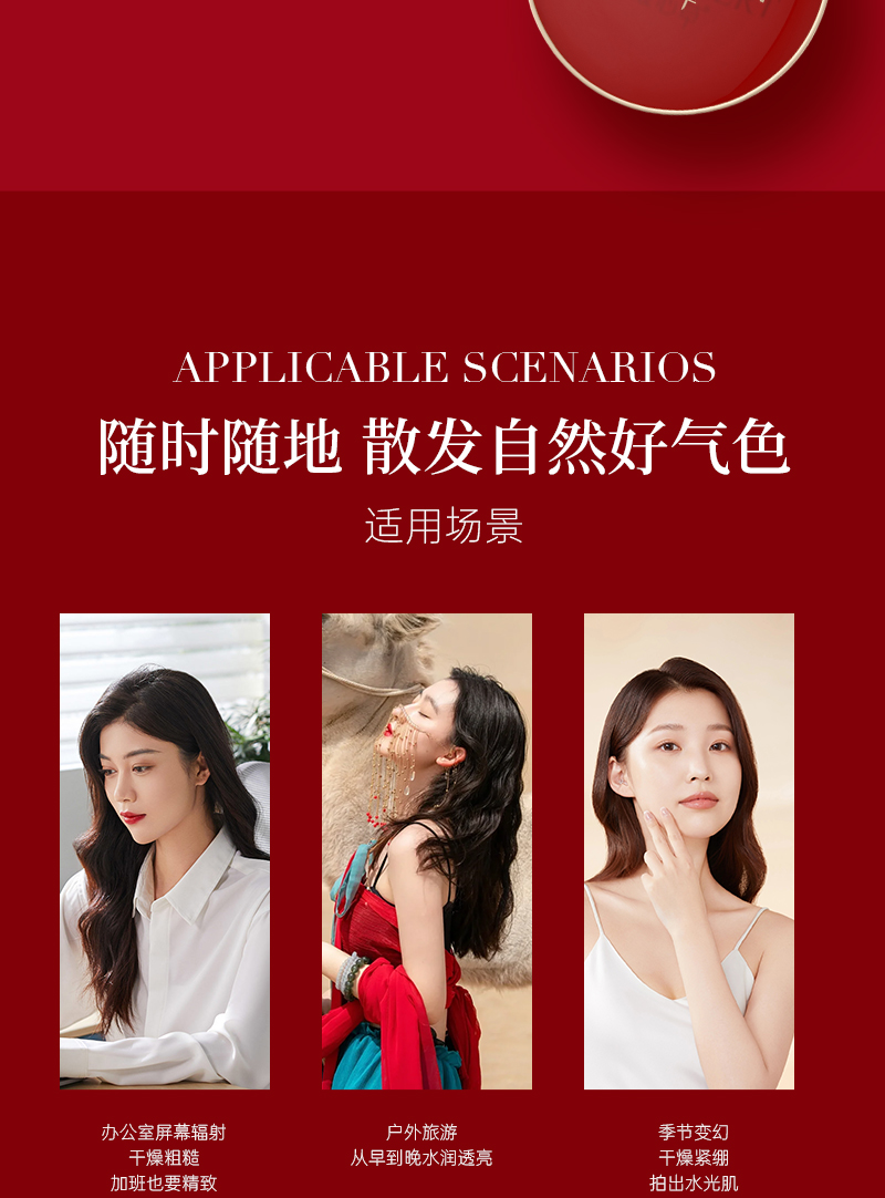 功效:空气气垫型粉霜,带来如丝绸般柔滑的涂抹感,令肌肤充满秀致光彩,带来修颜遮瑕的同时,缔造亮、润、贴妆效,告别卡粉浮粉,整个妆容显得匀净光采