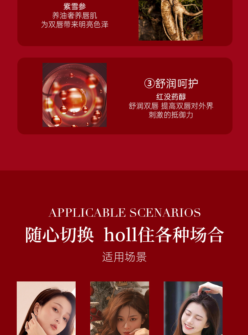 主要成分:聚二甲基硅氧烷、聚二甲基硅氧烷/乙烯基聚二甲基硅氧烷交联聚合物、二异硬脂醇苹果酸酯、十三烷醇偏苯三酸酯、异壬酸异壬酯、聚甘油-2 三异硬脂酸酯、三山嵛精、山梨坦异硬脂酸酯、聚甘油-3 二异硬脂酸酯、鲸蜡基 PEG/PPG-10/1 聚二甲基硅氧烷、乙烯基聚二甲基硅氧烷/聚甲基硅氧烷倍半硅氧烷交联聚合物、CI 77491、CI 15850、苯氧乙醇、CI 15985、CI 77492、红没药醇,以及其它微量元素等