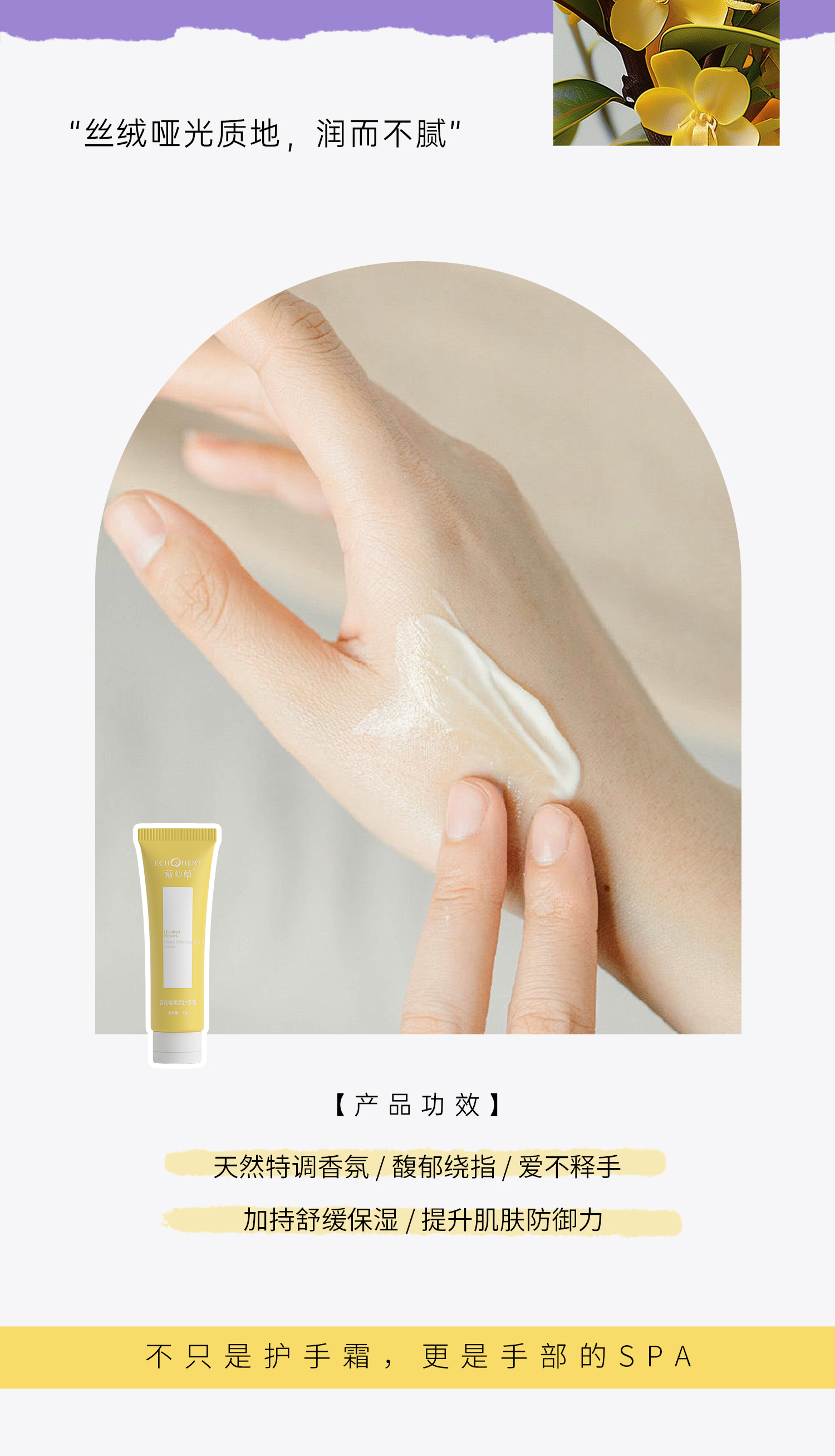 功效:集齐保湿、修护和滋养三重功效,一次解决手部粗糙、干裂问题。丝绒哑光质地,抹匀吸收后肌肤呈现出婴儿肌肤般柔雾丝滑感。