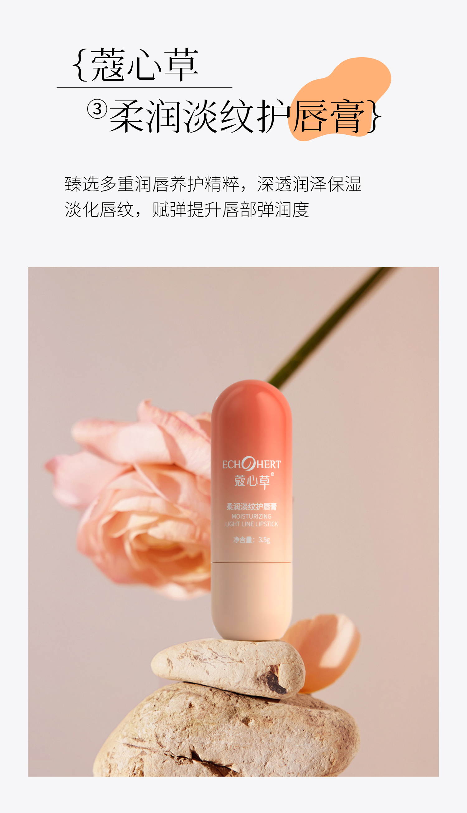 功效:甄选多重润唇养护精粹,改善唇部粗糙,温和修护起皮、皱裂的唇肌,润泽滋养,还原唇肌的光泽与弹性。