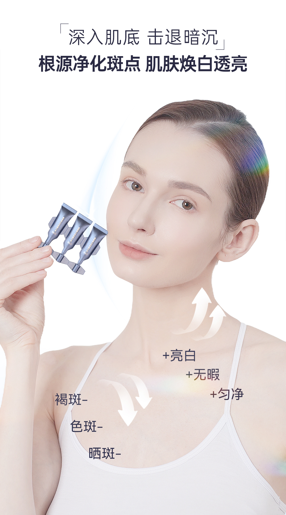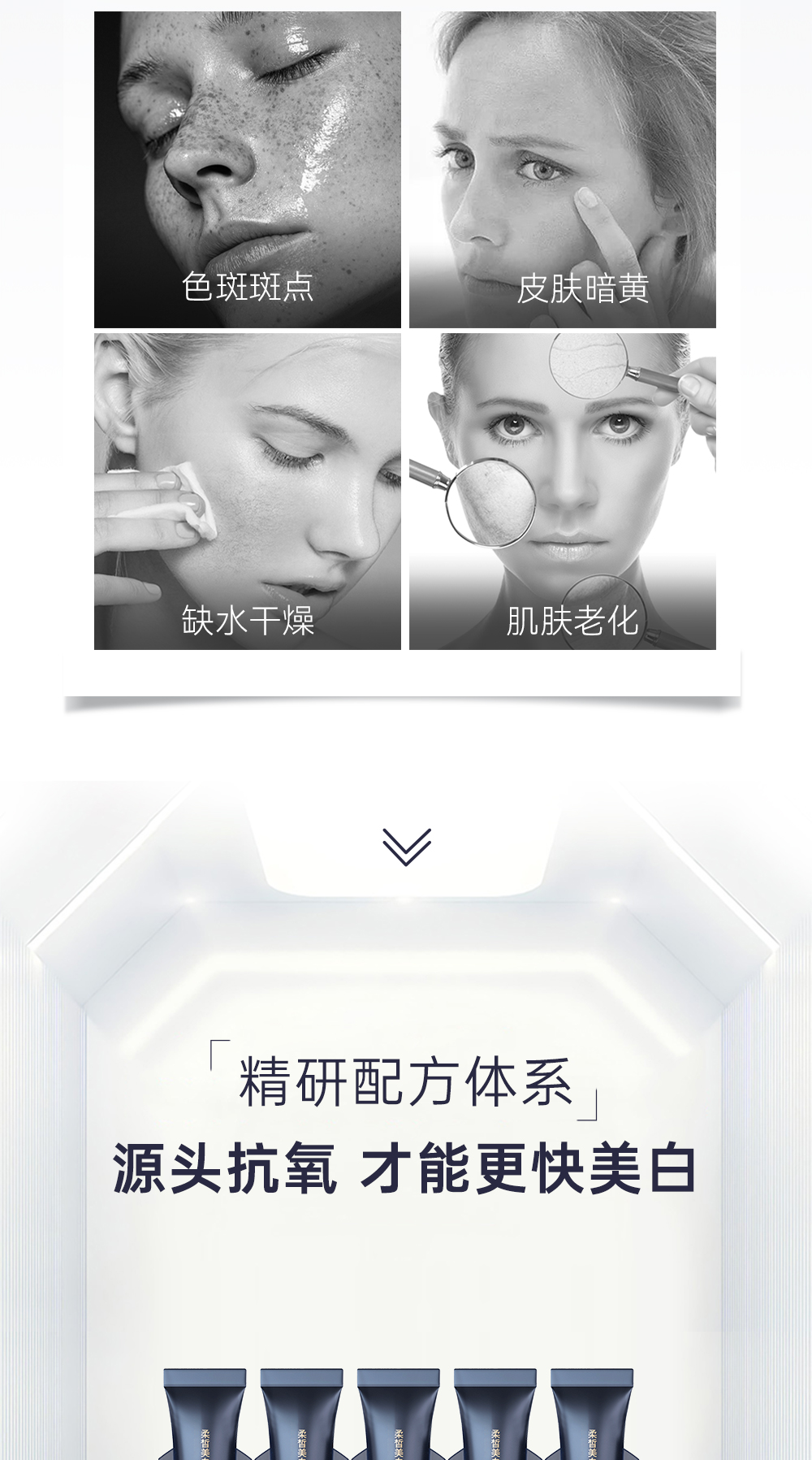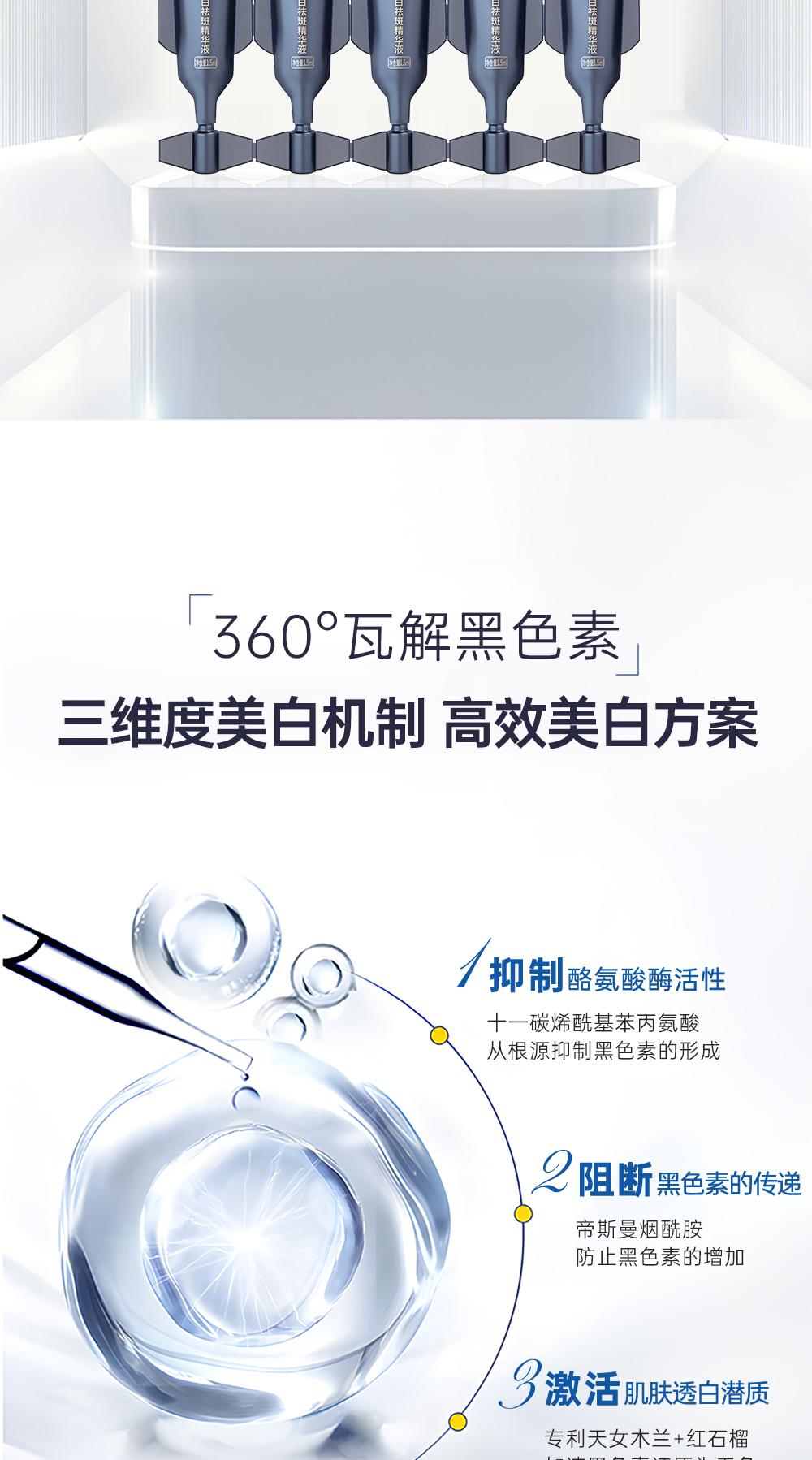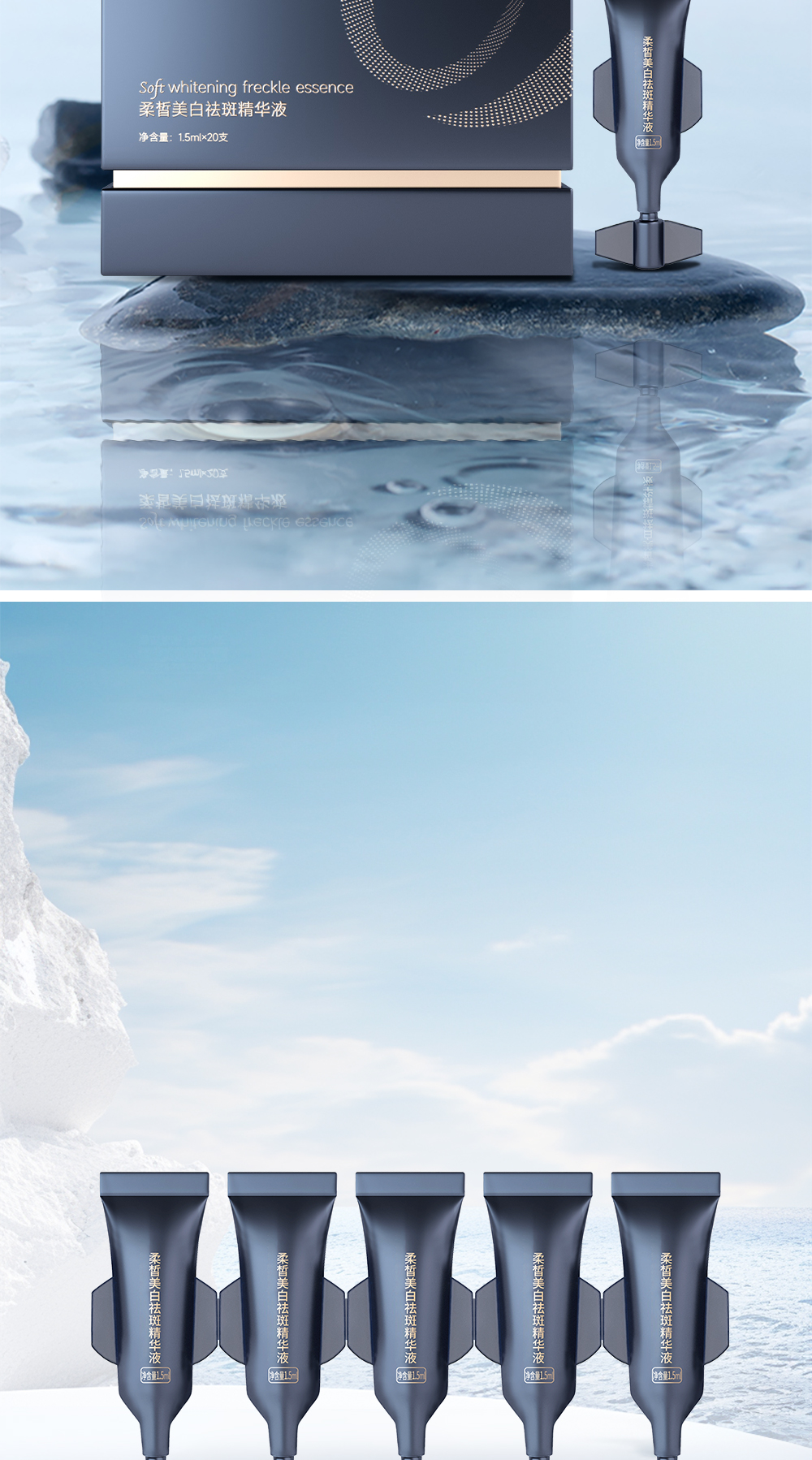 功效:多重活性美白成分,触肤沁融渗透,层层点亮“肌”底发挥美白作用,淡化色斑、亮泽肤质、紧塑淡纹、改善粗糙、稳固屏障,提升肌肤润白指数,看得见的水感透白,见证白里透光的转变,为你撑起光感白瓷丽人肌肤。