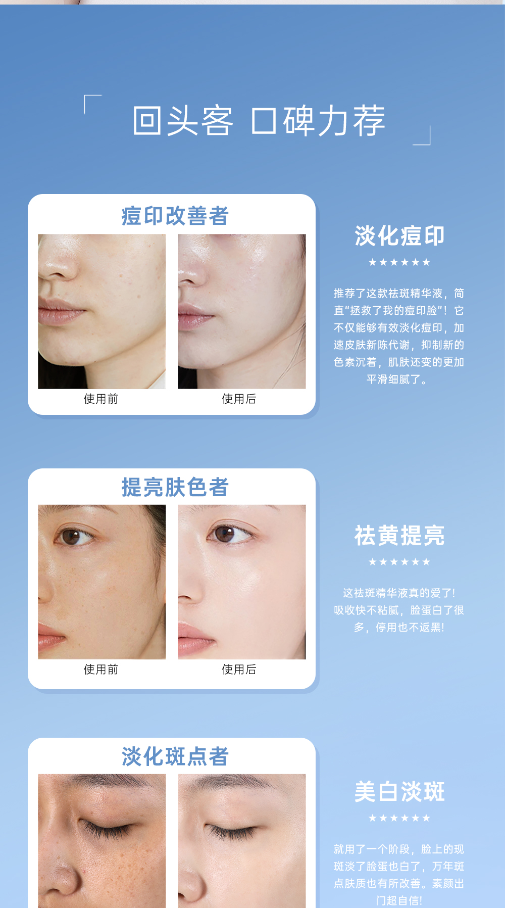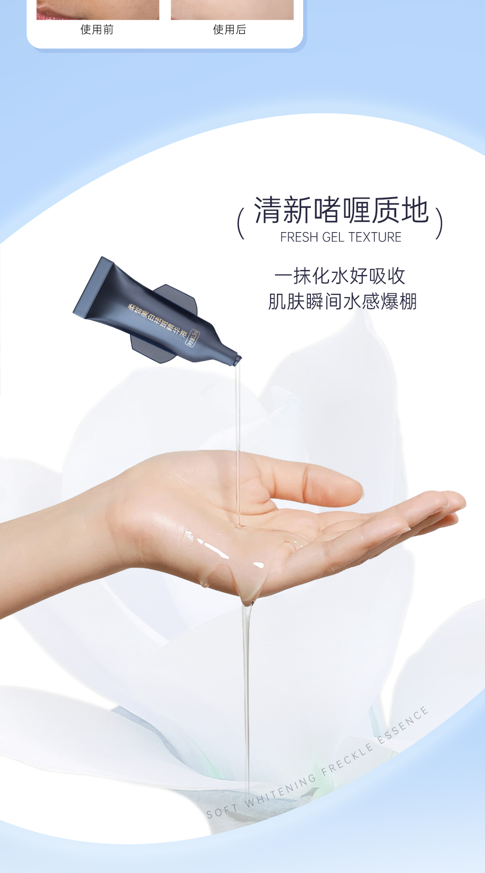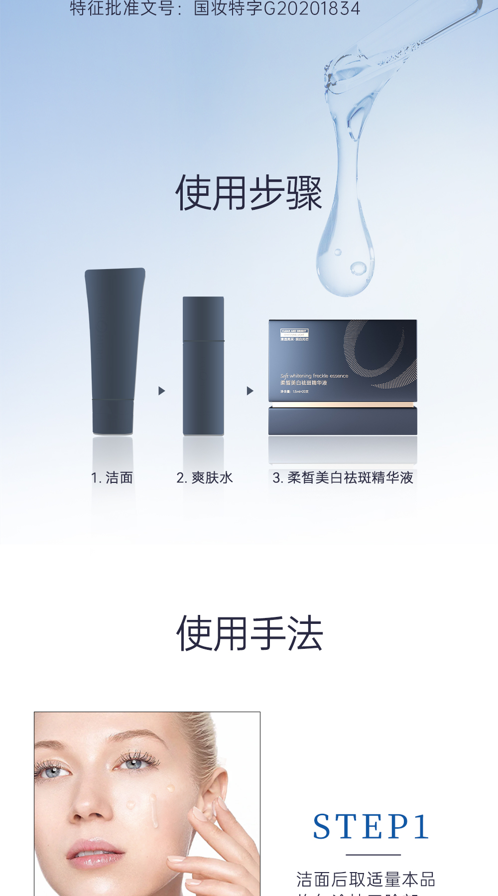 使用方法:洁面后,取适量本品均匀涂抹于脸部,轻拍按摩至吸收即可