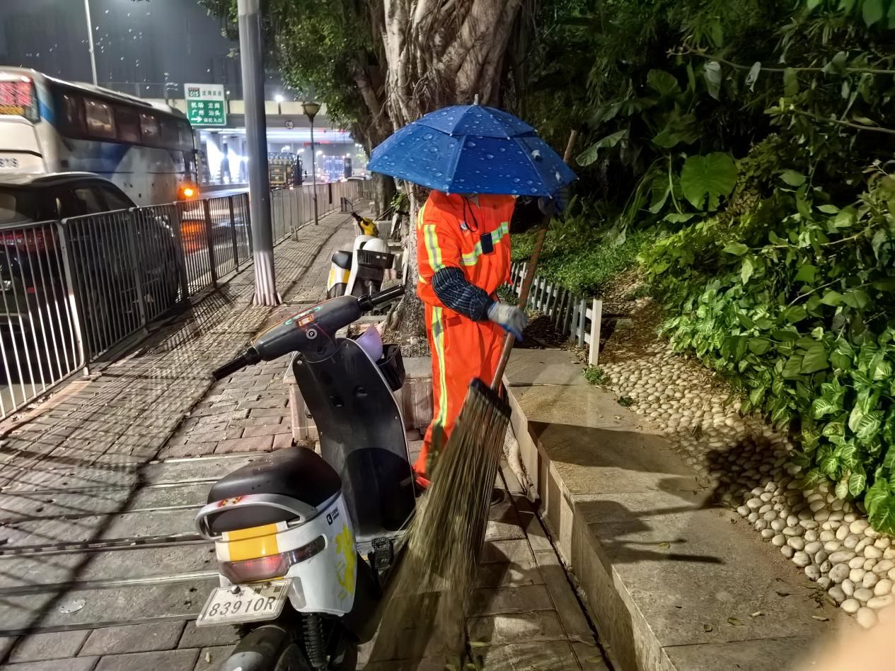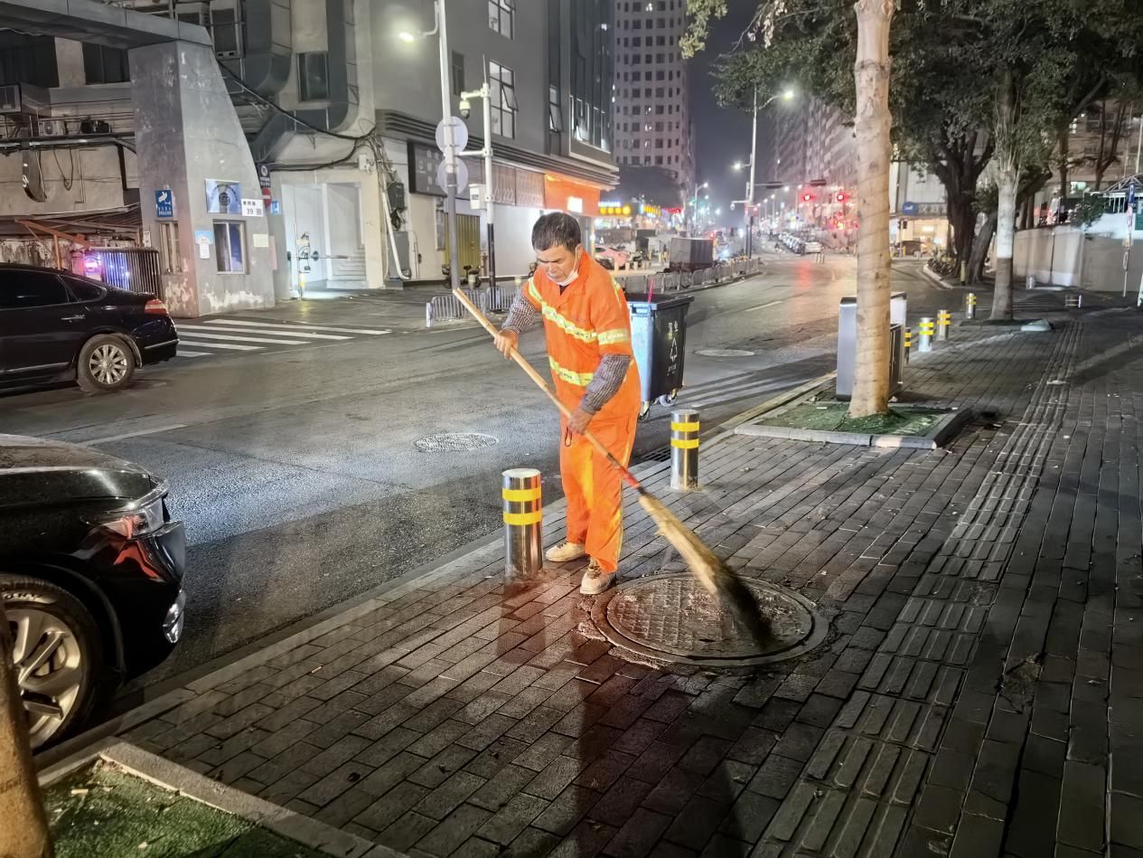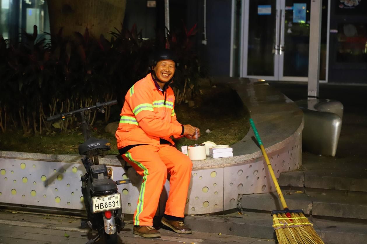 街边的路灯拉长他们孤零零的身影,刷刷响起的扫帚掠过路面的声响和扬起的灰尘,让这些身影瞬间变得让人感动又肃然起敬。