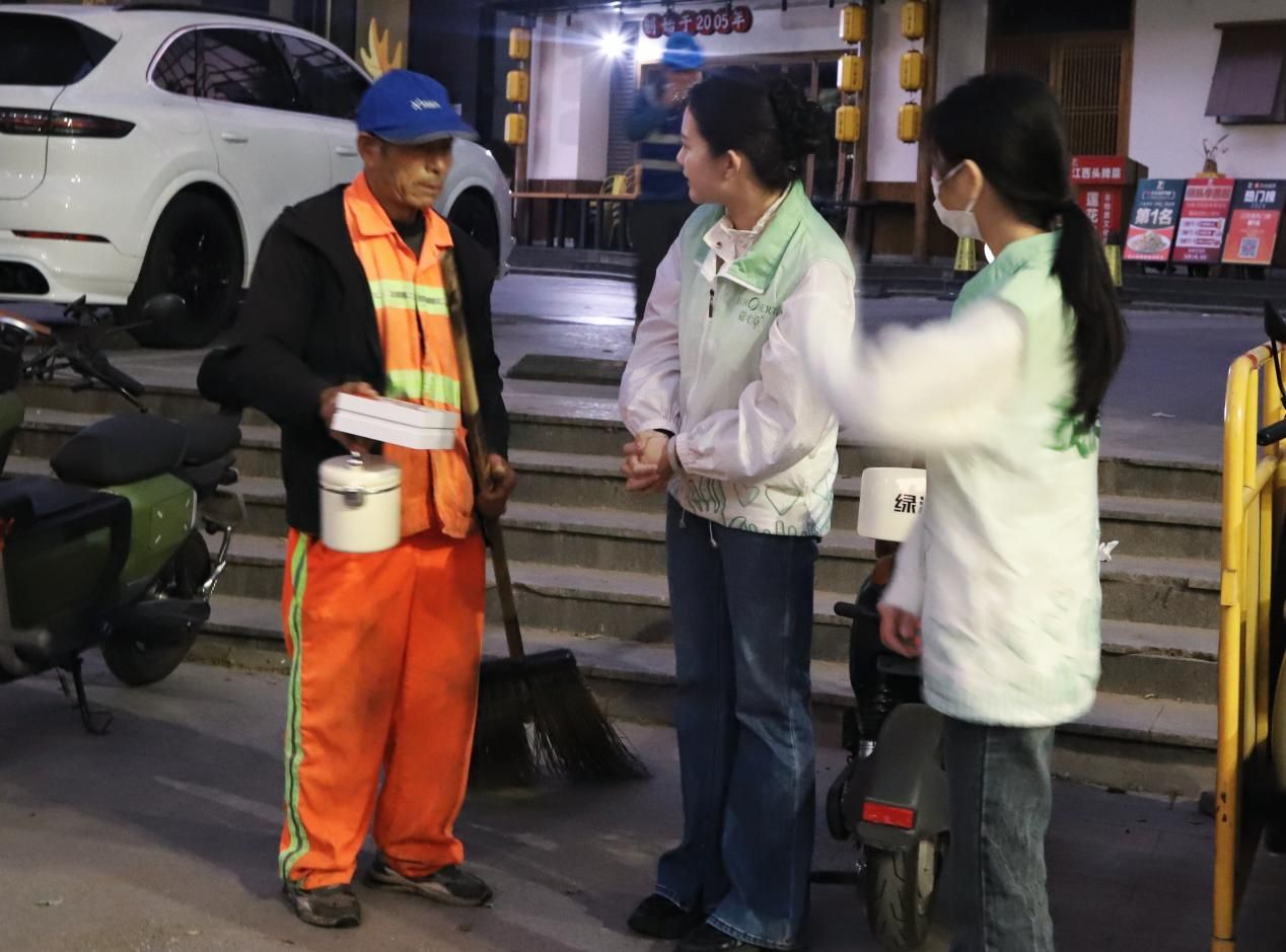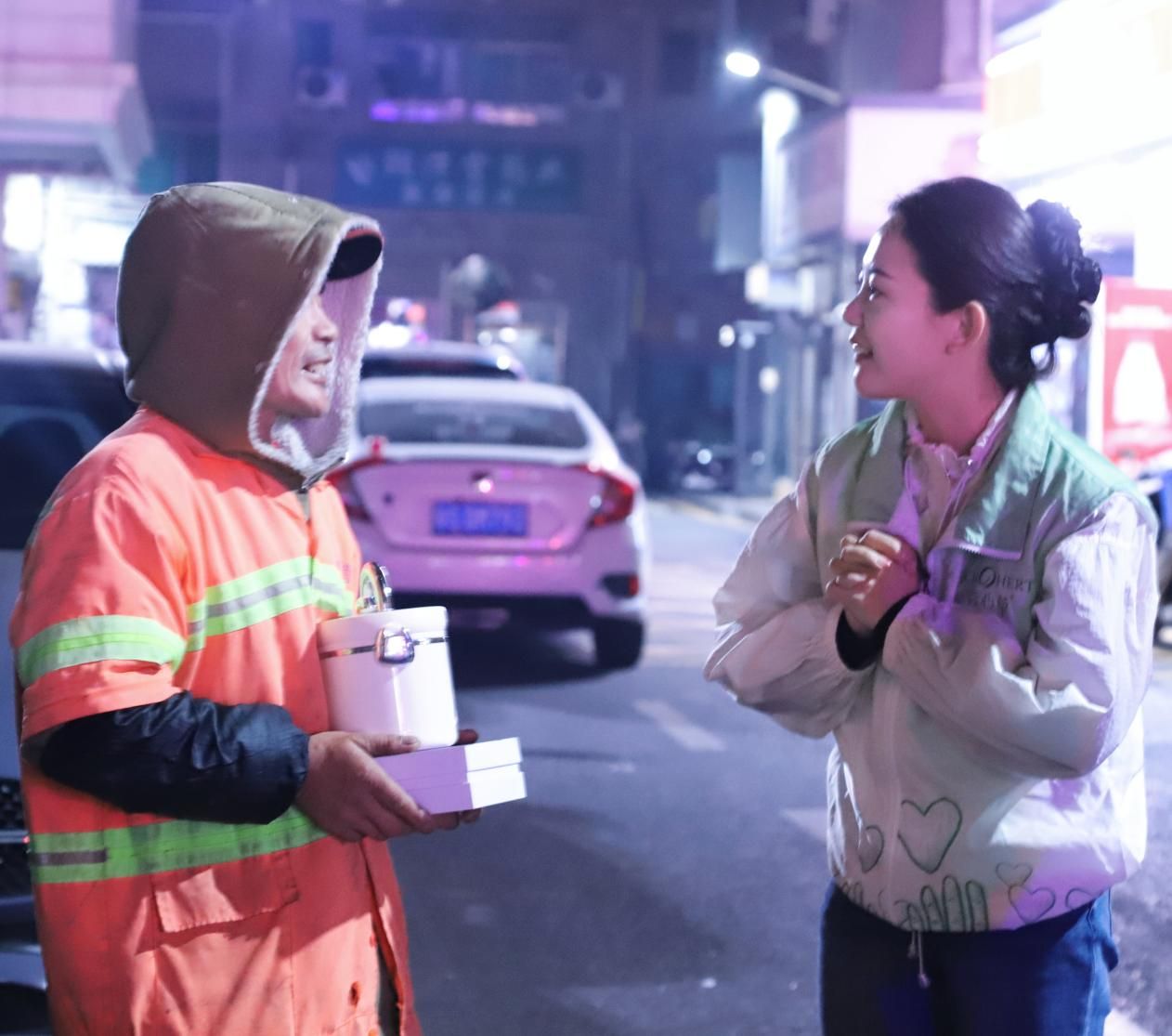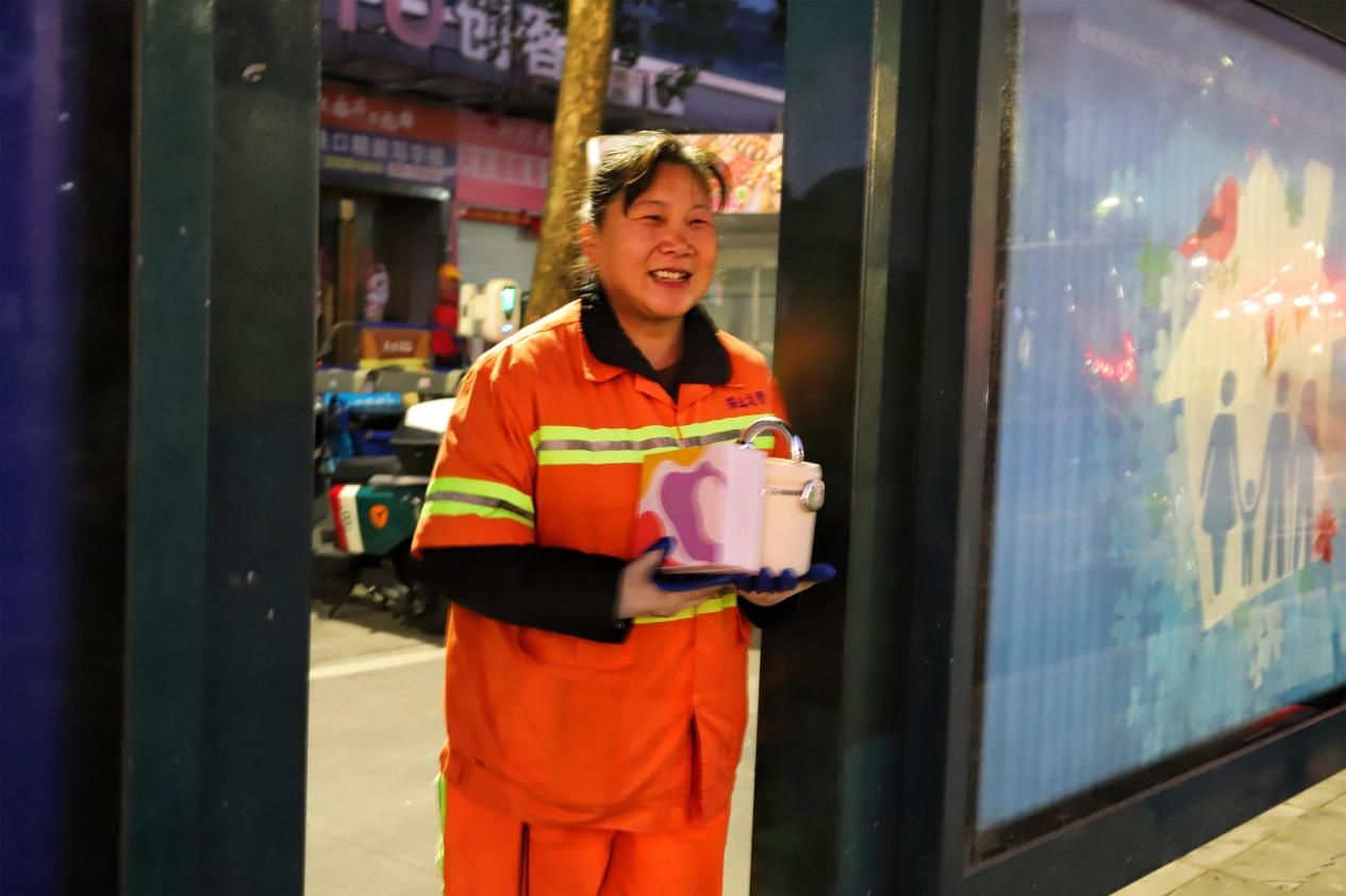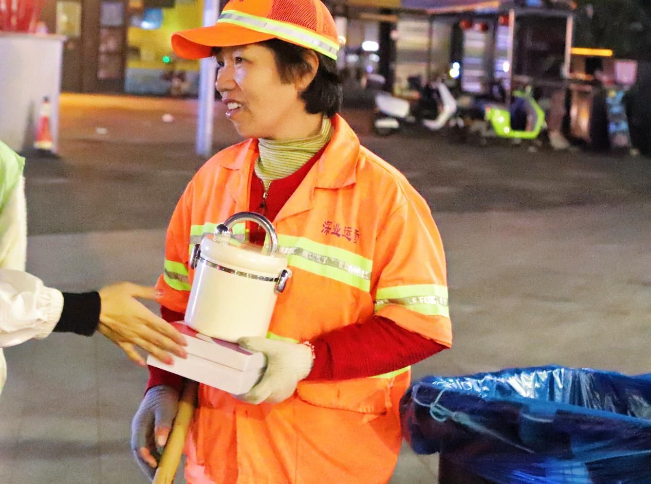 一声声亲切的问候,一份份早餐的传递,成了寒冬街头里最温暖的画面。大多数环卫工人接过早餐之后顾不上吃一口又开始投入到紧张的清扫工作中......“我们每天起早贪黑,早餐总是草草解决,没想到可以吃到热腾腾的早餐,感觉特别幸福,暖心又暖胃!”一位环卫阿姨动情地说。