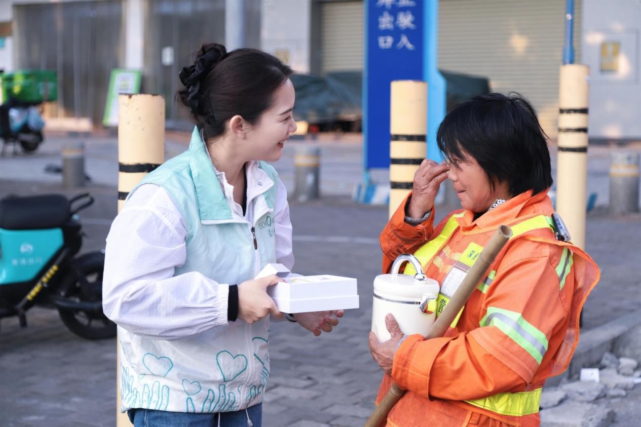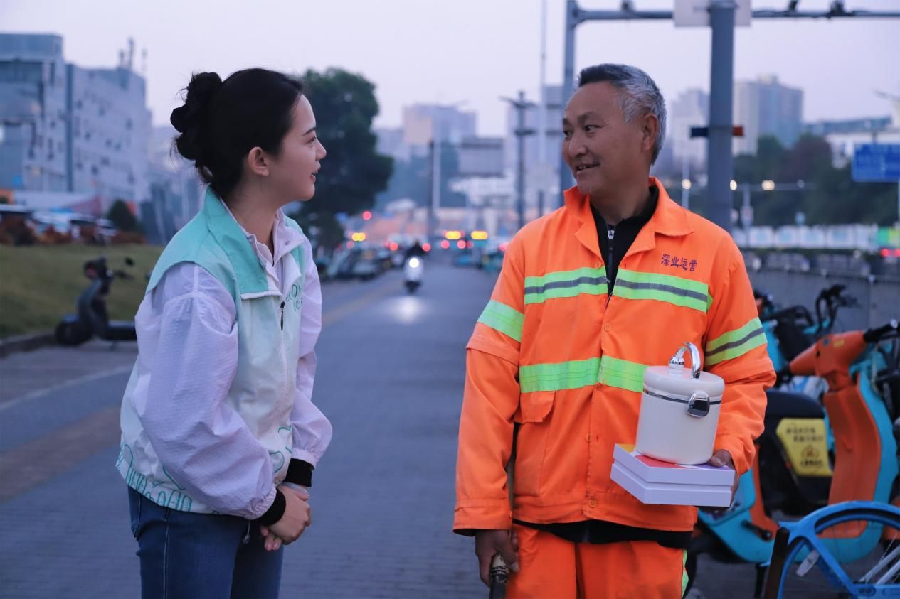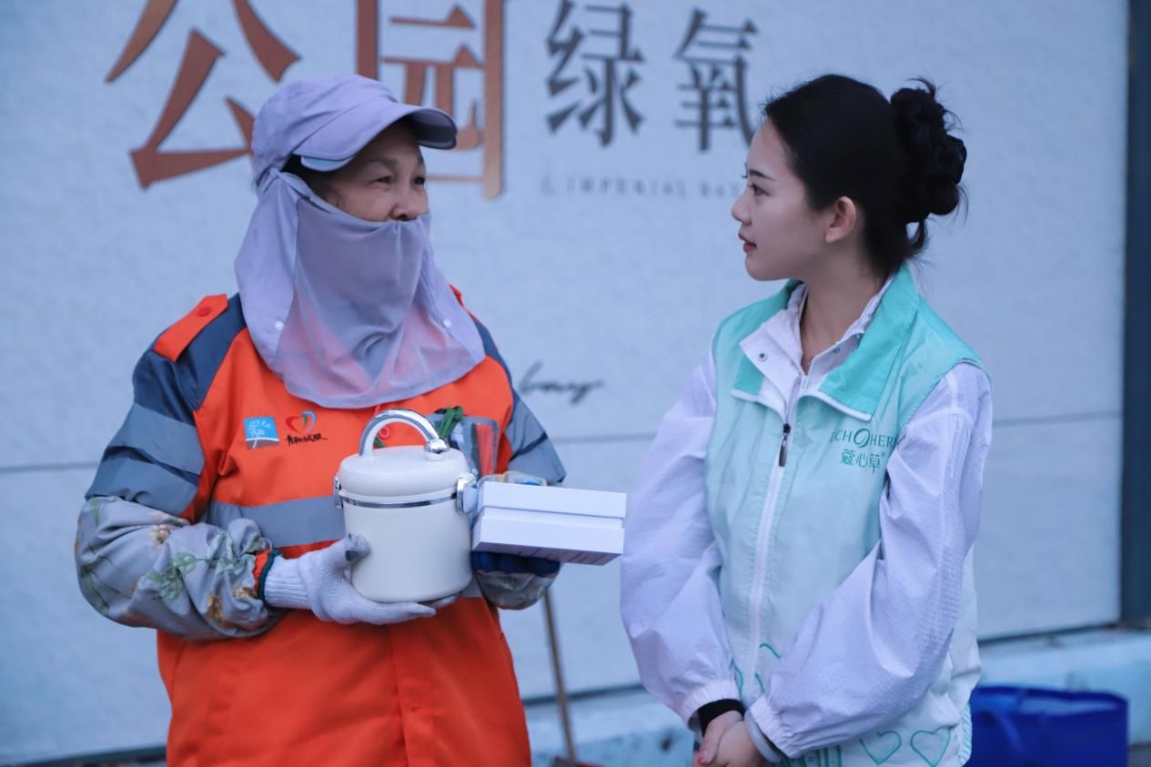 “入冬以后,天气越来越寒冷,环卫工人打扫非常辛苦,为他们准备爱心早餐还有呵护礼盒,希望在这个寒冷的冬天,为他们送上一点温暖、一份爱心。”杨冉老师说道。