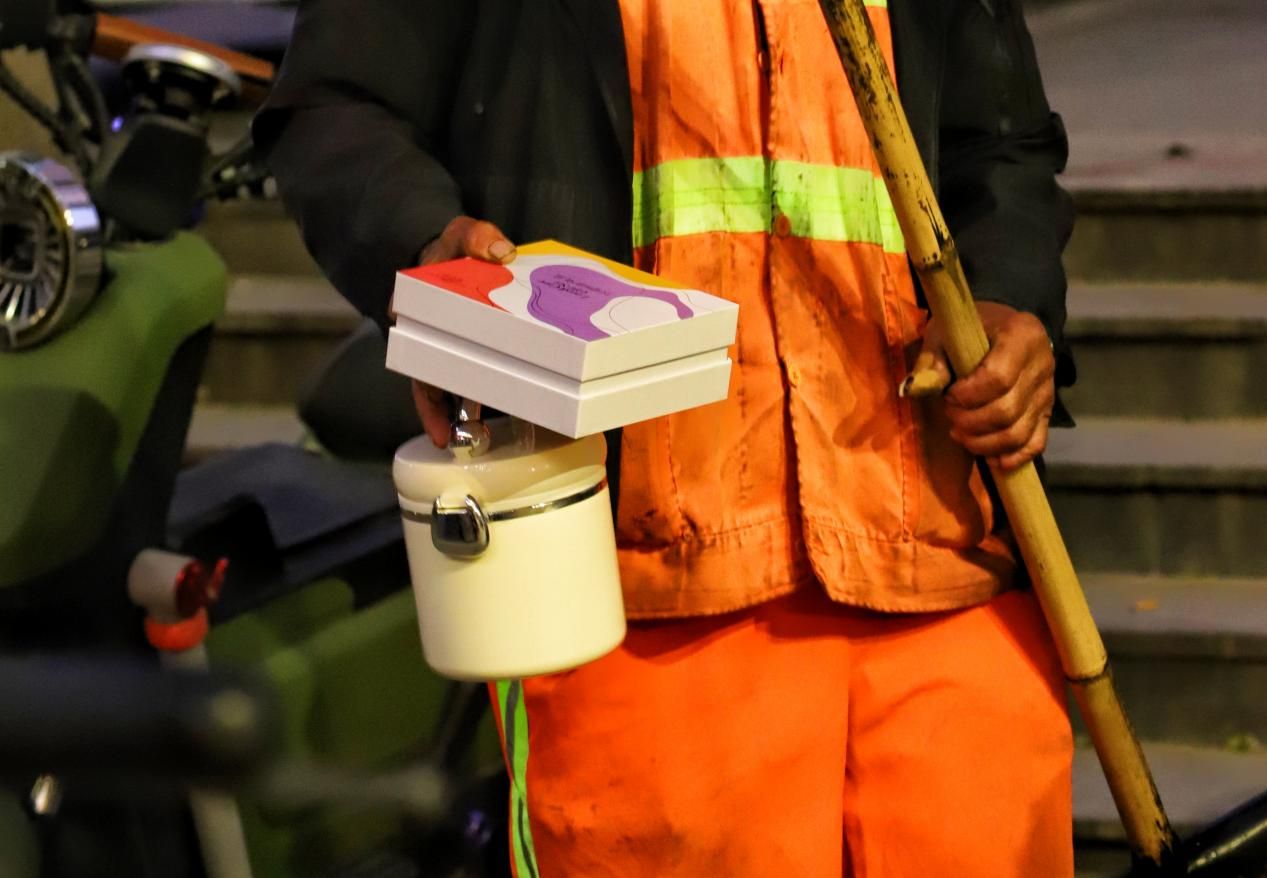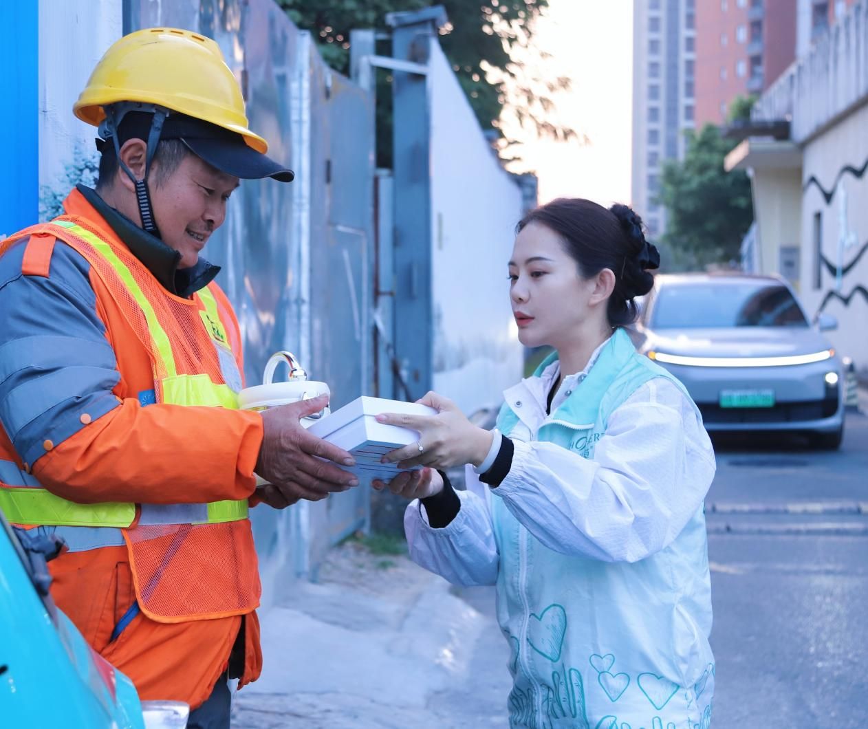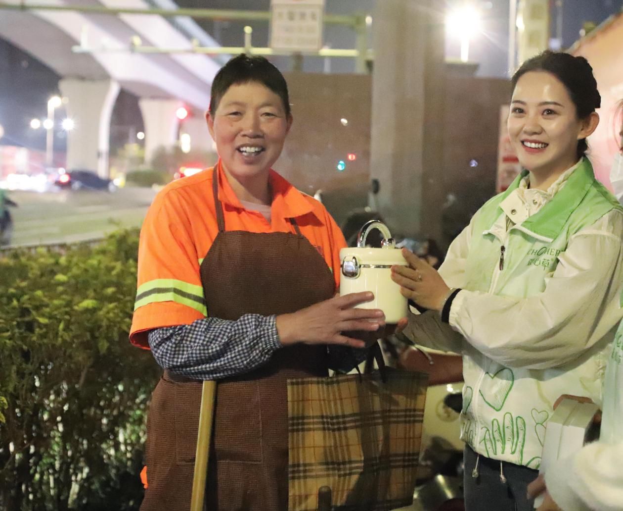 “入冬以后,天气越来越寒冷,环卫工人打扫非常辛苦,为他们准备爱心早餐还有呵护礼盒,希望在这个寒冷的冬天,为他们送上一点温暖、一份爱心。”杨冉老师说道。