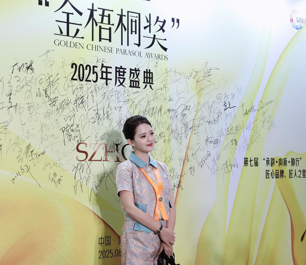 注:杨冉老师作为草木心化妆品(深圳)有限责任公司代表出席金梧桐奖
