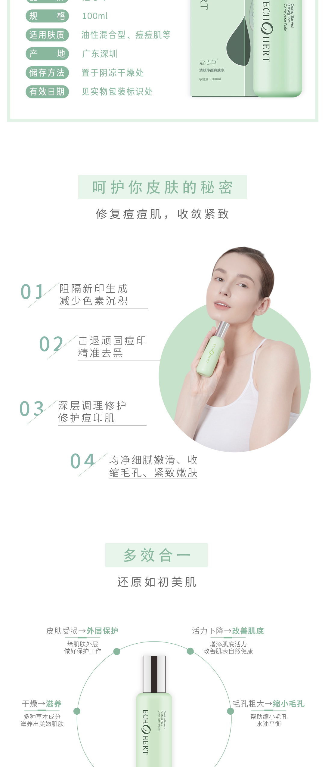 使用方法:洁面后取本品擦于整脸或痘痘处,双手轻轻拍打至完全吸收,每天擦拭
