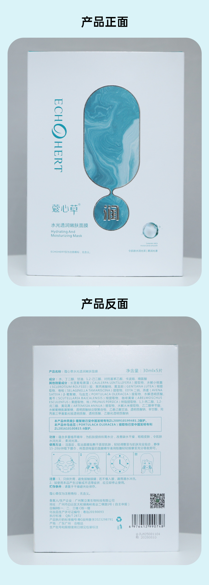 主要成分:水、丁二醇、甘油、1,2-己二醇、对羟基苯乙酮、卡波姆、精氨酸 其他微量成分:长茎葡萄蕨藻(CAULERPA LENTILLIFERA)提取物、水解小核菌(SCLEROTIUM ROLFSSII)胶、聚丙烯酸钠、黄龙胆(GENTIANA LUTEA)根提取物、卷柏(SELAGINELLA TAMARISCINA)提取物、EDTA 二钠、燕麦(AVENA SATIVA)β-葡聚糖、马齿苋(PORTULACA OLERACEA)提取物、水解透明质酸、黄芩(SCUTELLARIA BAICALENSIS)根提取物、咖啡黄葵(ABELMOSCHUS ESCULENTUS)果提取物、桃(PRUNUS PERSICA)树脂提取物、1,3-丙二醇、1,2-戊二醇、黄花蒿(ARTEMISIA ANNUA)提取物、水解大米提取物、乙二醇单苄醚、水解葡糖氨基聚糖、透明质酸钠交联聚合物、乙基己基甘油、透明质酸钠、辛甘醇、羟丙基三甲基氯化铵透明质酸、透明质酸、乙酰化透明质酸钠本产品中燕麦β-葡聚糖已受中国发明专利ZL2009101994812保护。本产品中马齿苋(PORTULACA OLERACEA)提取物已受中国发明专利ZL2016101008156保护。