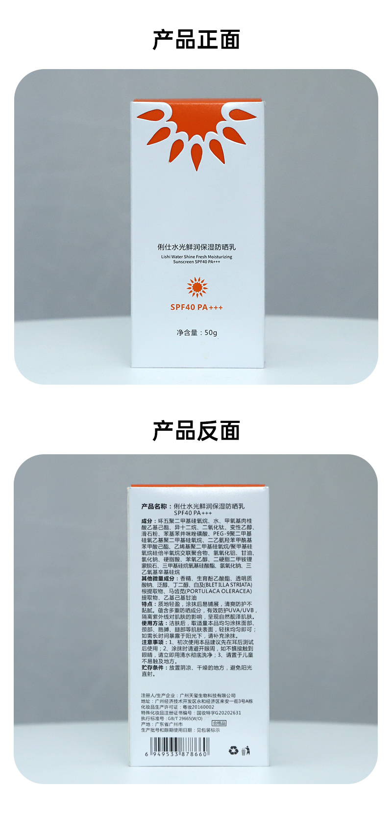 功效:质地轻盈、涂抹后易展开、高倍防护不黏腻,蕴含多种防晒成分及美白成分,有效防护UVA/UVB,同时也能提升肌肤的美白透亮度,做肌肤太阳下隐形的遮阳伞。